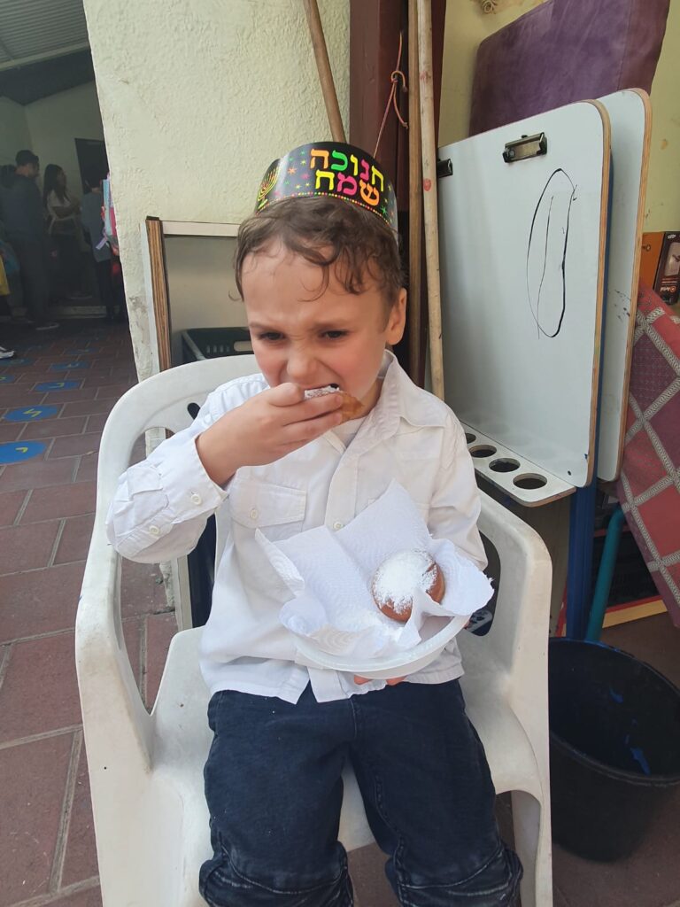 בארי מחפש אותי במבטו, רוצה שאראה אותו רוקד ושר. ואני? במחשבות של מה עם סופגניה עבורו?! תחושת החמצה על שלא נהנית עם כל ההורים שמחייכים ומצלמים – הם בכלל לא יודעים איזו סערה עוברת לי בראש עכשיו ועם איזה דופק אני מסתובבת לידם.