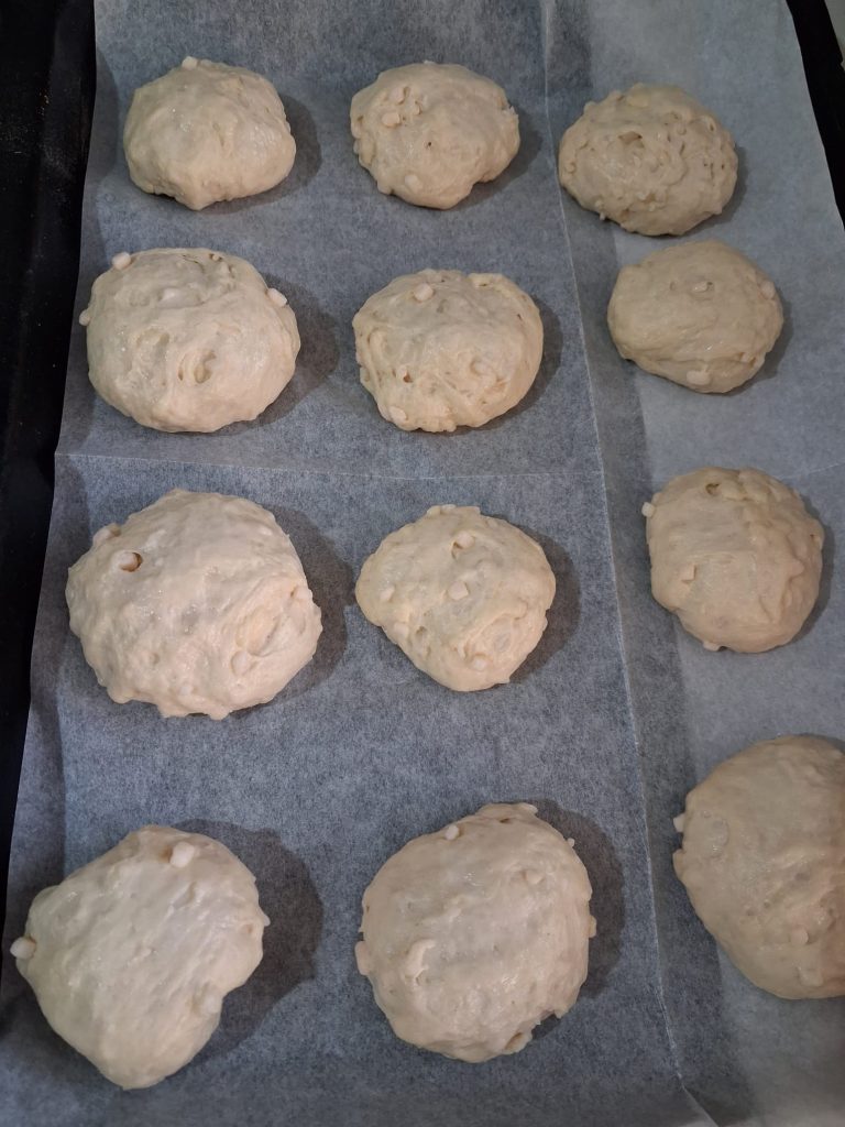 אח"כ טיפה מכדררים אותו ומניחים על תבנית האפייה לתפיחה קצרצרה. שימו לב שאחרי האפייה הן תופחות עוד!