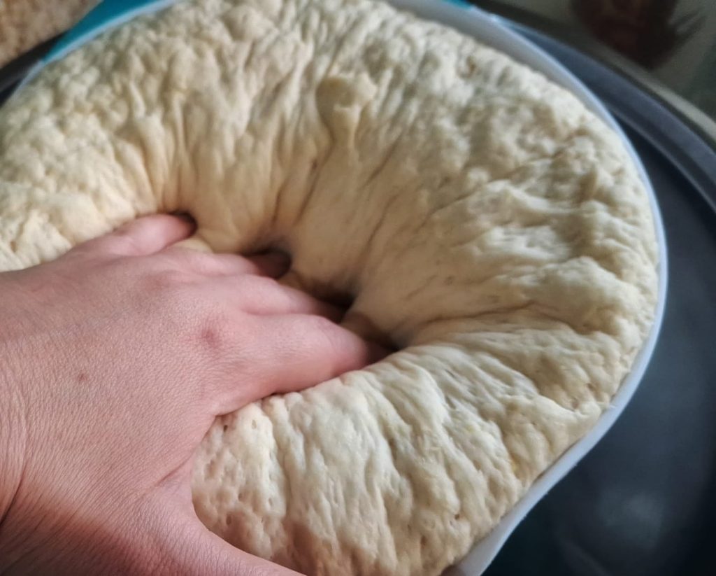 מפה לשם, שוב מצאתי את עצמי מאלתרת מתכון חדש. הספקתי כבר להכין את הבצק ו"להשכיב אותו לישון, ואז הגיעה חברה לקפה ספונטני. מפה לשם בזמן שאנחנו קישקשנו, הוא הרוויח שנ"צ מכובד.